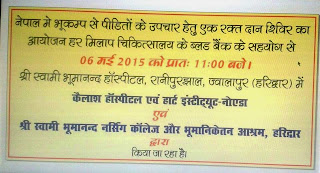 Home » Blog » नेपाल के भूकम्प पीड़ित लोगो के उपचार हेतु रक्त दान करते महाराज श्री l नेपाल के भूकम्प पीड़ित लोगो के उपचार हेतु रक्त दान करते महाराज श्री l Leave a Comment / May 26, 2015